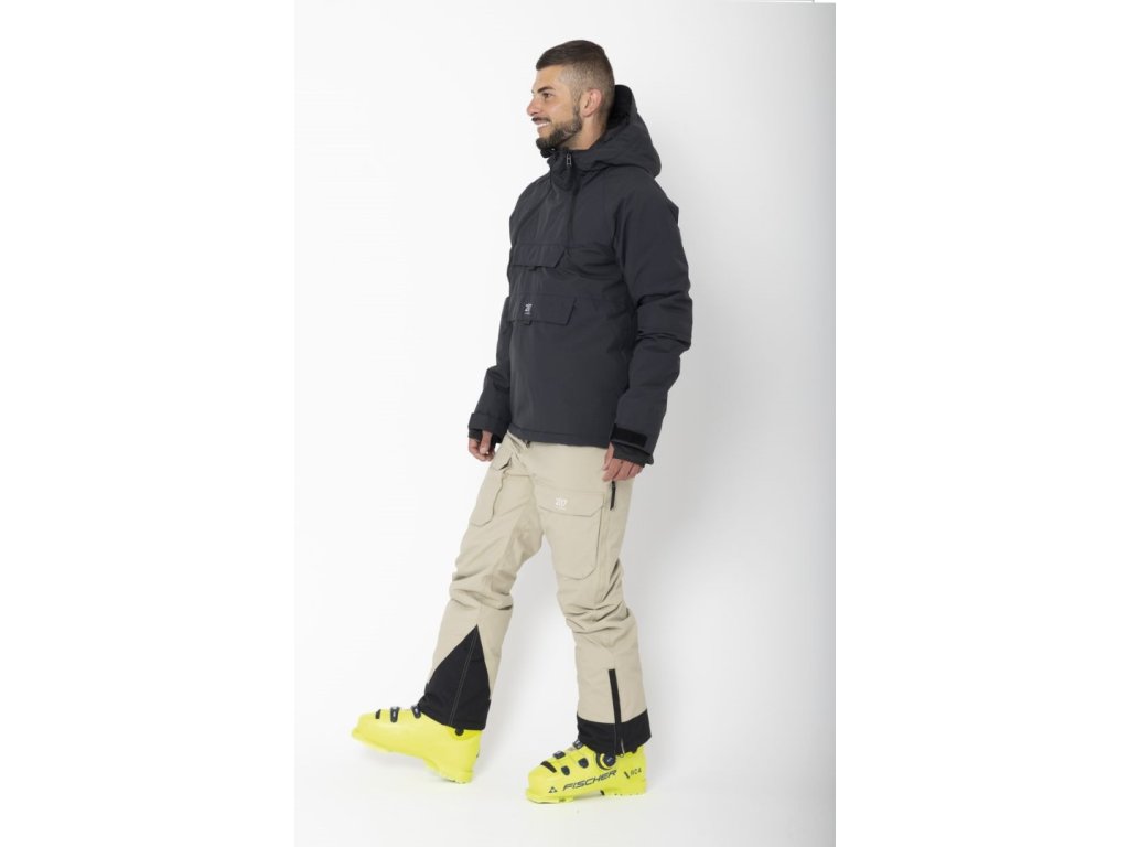 Bunda je vybavena promyšleným systémem kapes: dominantní klokaní kapsou pro vše potřebné, menší náprsní kapsičkou a nepostradatelným úložištěm pro skipas na levém rukávu. Proti sněhu a větru vás ochrání pevný sněhový pás, elastické manžety a stahování ve spodním lemu.