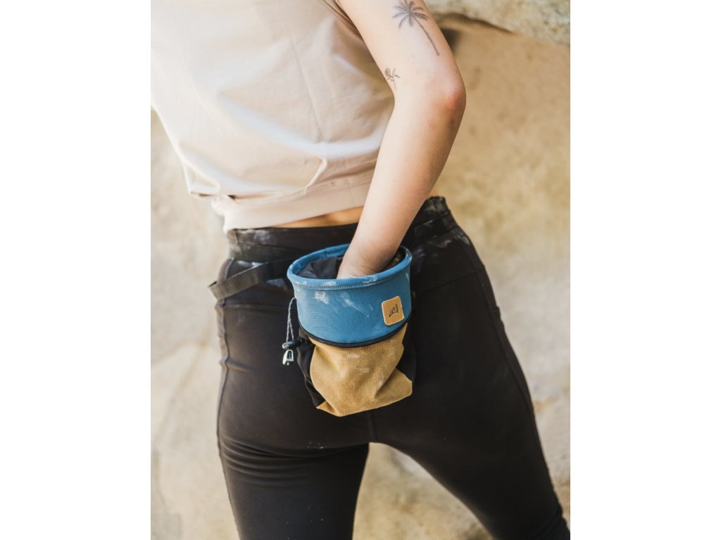 - Uzavírání na stahovací šňůrku – zabraňuje vysypání magnézia při transportu.
