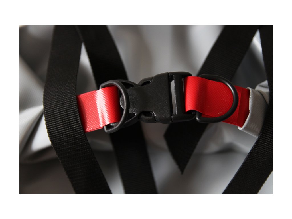 Nepromokavý vodácký vak, vyroben z kombinace materiálu Valmex 1000 g/m2 a Plastel 760 g/m2, což jsou velmi odolné materiály z polyesterové tkaniny, oboustranně nánosované vinylem (PVC).