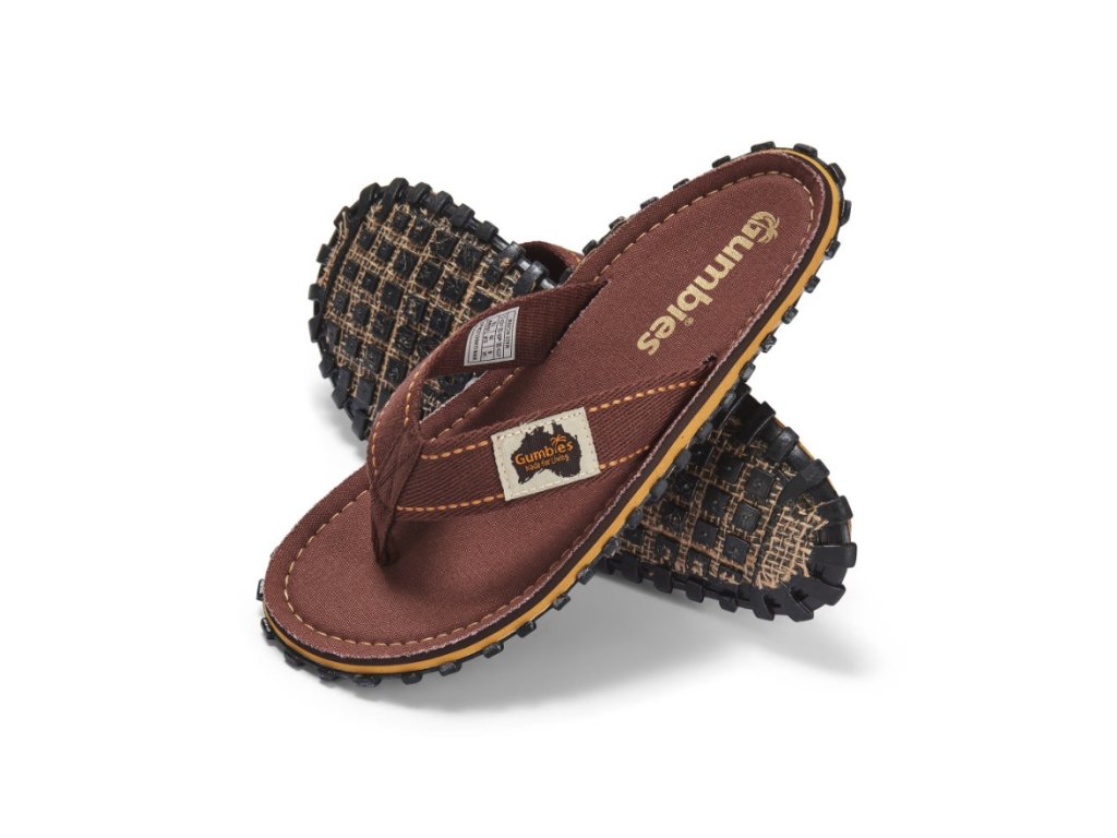 Žabky Gumbies byly navrženy s velkým etickým důrazem na použití přírodních materiálů. Podrážku tvoří recyklovaná guma spojená s jutovou sítí a stélka podrážky je potažená přírodním plátnem pro ještě lepší pohodlí. V současnosti existuje nepřeberné množství barevných kombinací, mezi kterými si každý vybere podle svého vkusu.